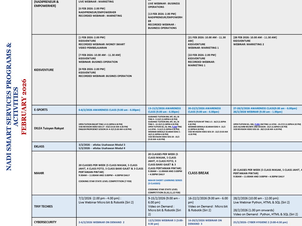 JADUAL AKTIVITI FEBRUARI 2026